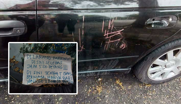 Tapak lot dah dibagi, korang pasang di situ saja, tak boleh ke? Ini tidak, pasang sampai parking kereta. Selepas itu korang angin bila orang parking kereta di situ. Korang pecahkan kereta, calarkan, patahkan, conteng-conteng apa kes?