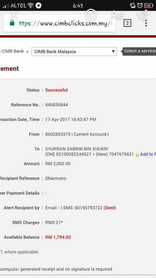 "Hasil siasatan saya sendiri, dia menggunakan gambar orang lain dan menyamar menjadi Chinta Chanduri dan Syarifah Syakilla dengan menagih simpati orang kononnya dia janda anak satu, bercerai sebab dipukul suami.