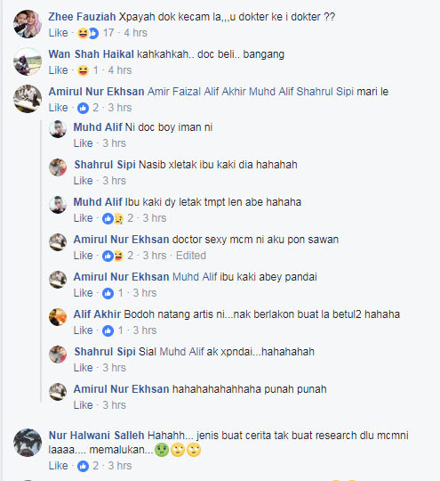 Video yang dimuat naik Norhasrizal Md Nor sejak 11 jam yang lalu telah dikongsi 1,016 pengguna Facebook yang mengecam drama berkenaan 'syok sendiri' dan tidak membuat kajian awal menggenai cara menangani pesakit yang diserang sawan.