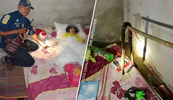 Dalam kejadian jam 7.30 malam Selasa lalu di sebuah rumah di Surat Thani, Thailand, mangsa, Prapawee Prawat, 9, sedang tidur di tilam yang diletakkan di atas lantai sebelum dipatuk ular berbisa berkenaan.
